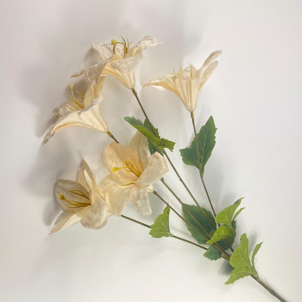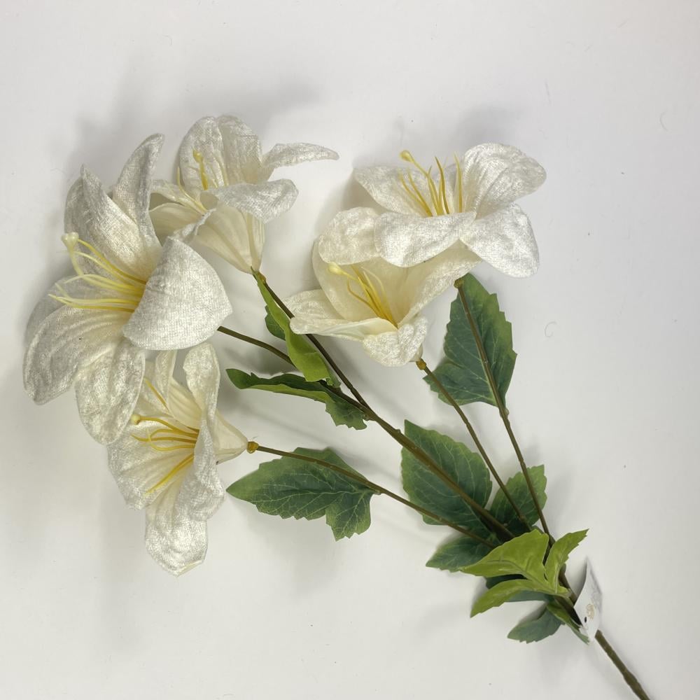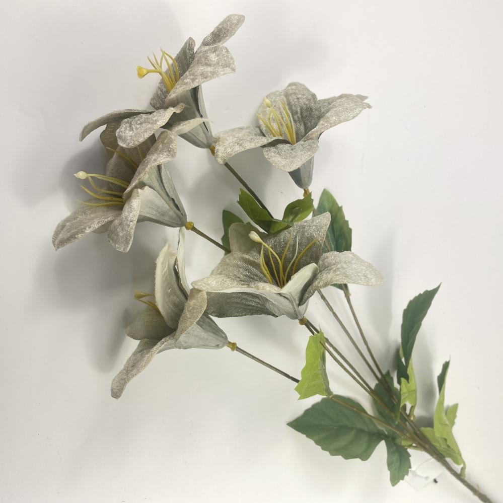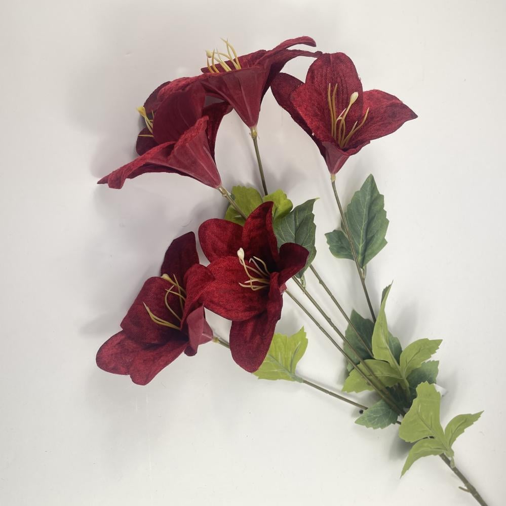 يتكون ليليوم قطيفة فاخر من أربعة فروع، حيث يحتوي كل فرع على أربع وردات كبيرة بالإضافة إلى براعم صغيرة، مما يخلق تنسيقاً غنياً ومليئاً بالحياة. يبلغ طول كل غصن حوالي 90 سم، مما يجعله مثالياً للتنسيق في الفازات الكبيرة أو كجزء من ترتيبات الزهور في الأعراس والديكورات المنزلية.